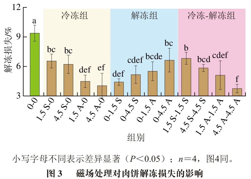 3.1 不同磁场强度对调理肉饼解冻损失的影响