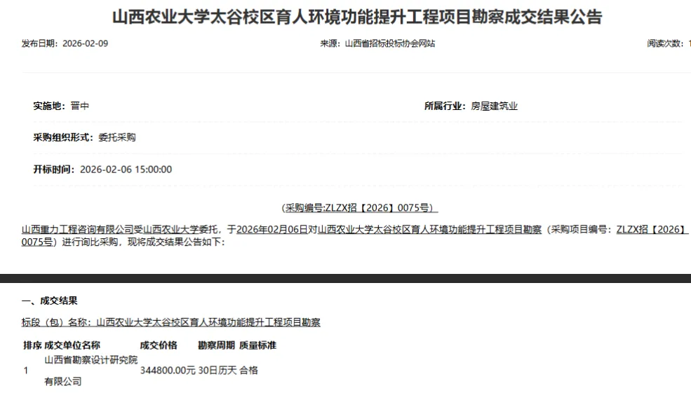 《山西农业大学太谷校区育人环境功能提升工程项目造价咨询服务询比采购公告》