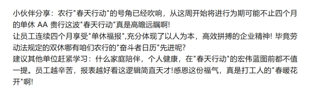 如果不是反内卷,前些年整个春天行动期间一天都休不了!
