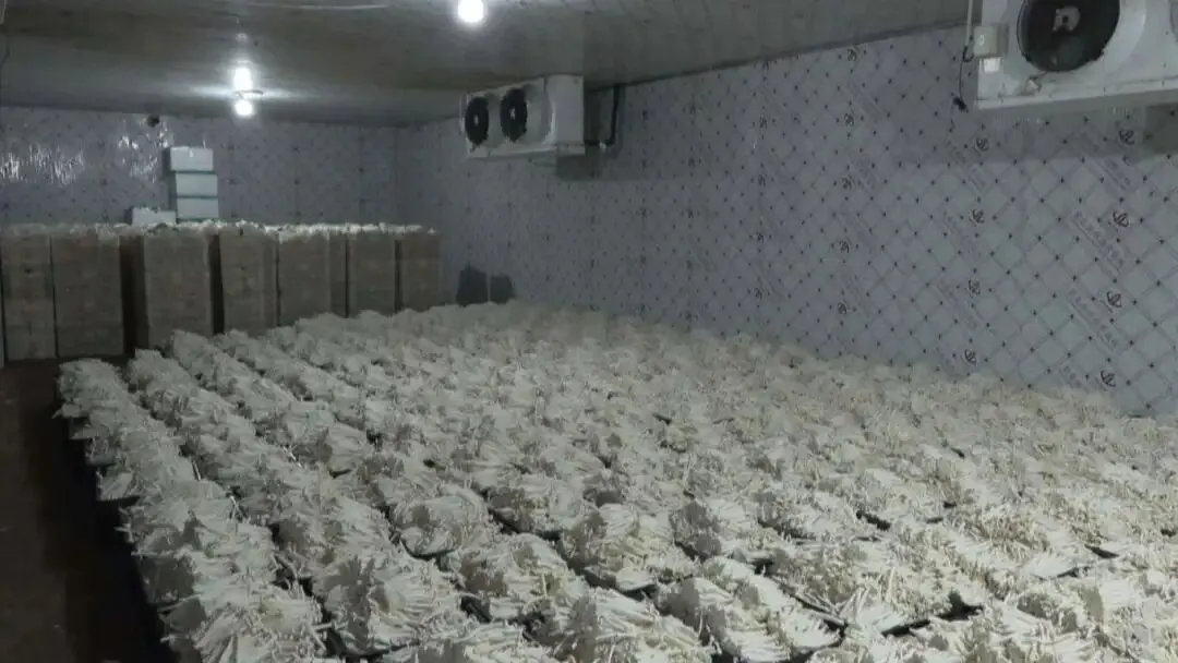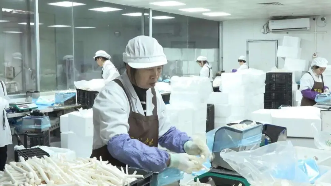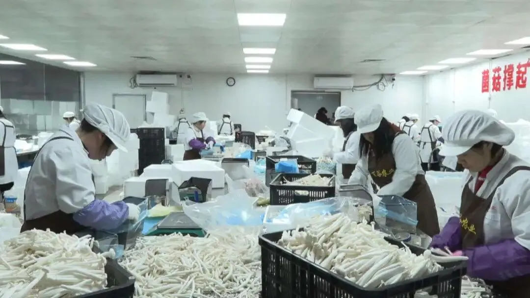 走进百谷农业包装车间,只见生产线井然有序,女工们动作娴熟,将新鲜的海鲜菇快速称重、封装。一旁的冷库内,整齐码放的菌筐持续为包装线供应原料。尽管正值春节假期,车间内依旧一派繁忙景象,工人们坚守岗位、干劲十足,全力保障节日市场供应。