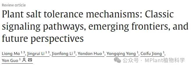 近日,中国农业大学生物学院、植物抗逆高效全国重点实验室郭岩团队在Molecular Plant杂志在线发表了题为Plant salt tolerance mechanisms: Classic signaling pathways, emerging frontiers, and future perspectives的综述论文。该文系统梳理并深化了植物耐盐领域的知识体系:一方面强调了经典 SOS(Salt Overly Sensitive)信号通路在离子稳态调控中的核心地位,另一方面将其与盐胁迫早期感知与信号启动、组织与细胞尺度的离子运输及区隔化、表观遗传重编程与“胁迫记忆”,以及田间常见复合逆境下的非线性信号整合等新兴前沿有机融合,提出面向未来的多学科交叉研究的关键问题与育种路径,为系统解析植物耐盐机制、设计下一代“环境智能型”耐盐高产作物提供了理论框架与思路参考。
