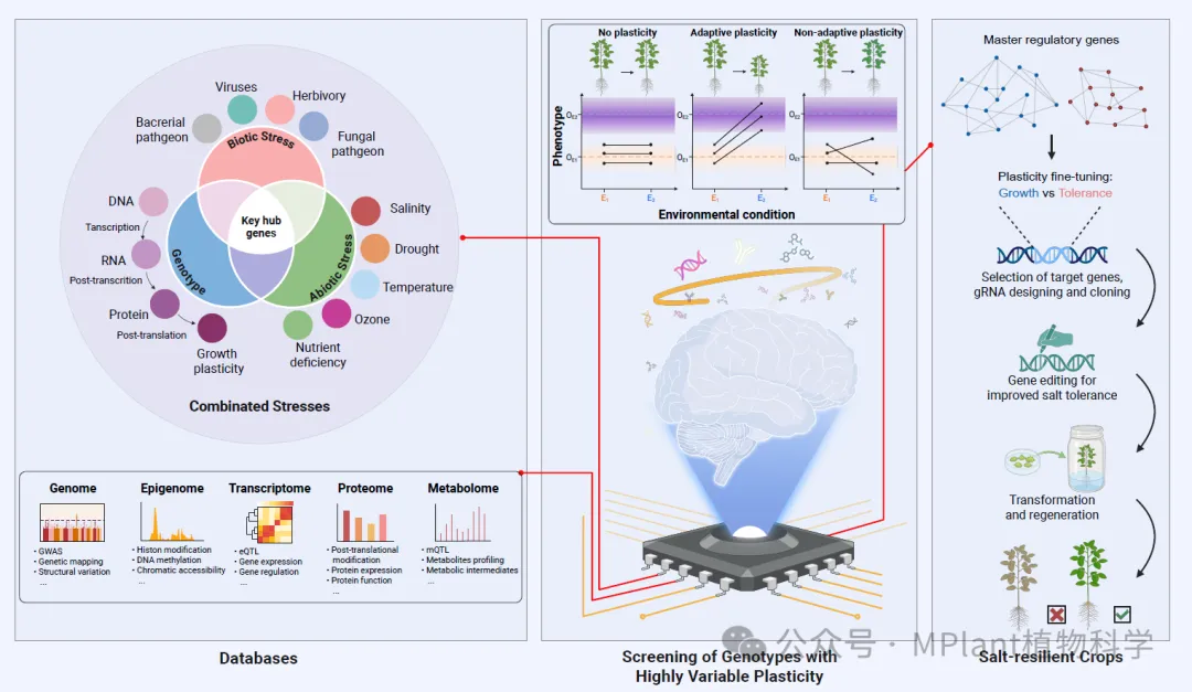 图3. 生长可塑性的多级调控与耐盐作物的智能设计策略