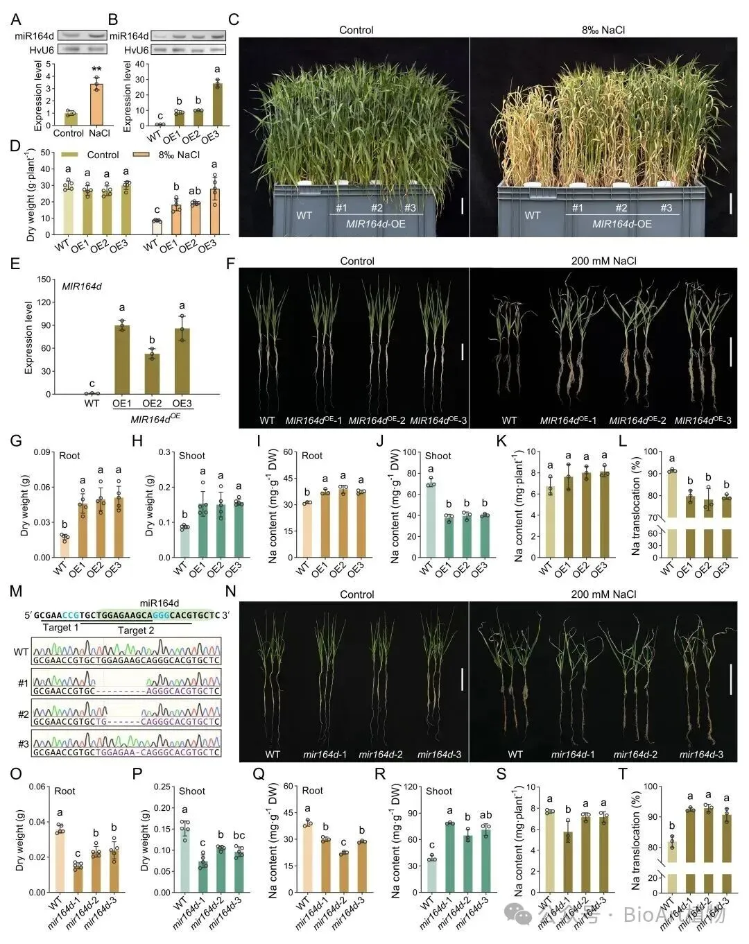 图1. miR164d增强大麦耐盐性