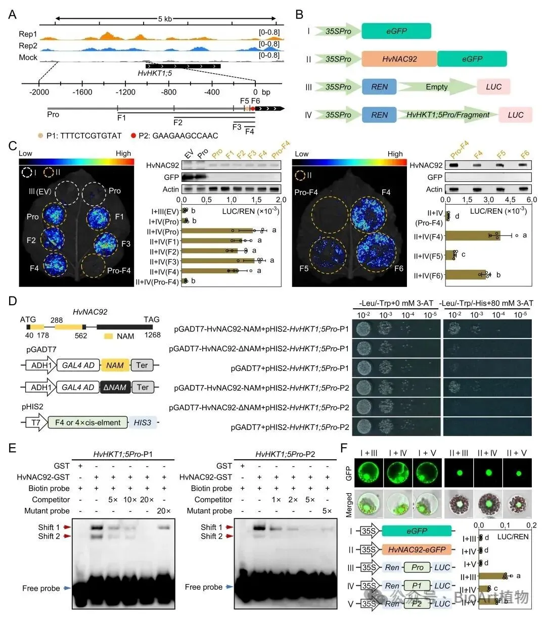 图2. HvNAC92结合HvHKT1;5启动子激活其表达
