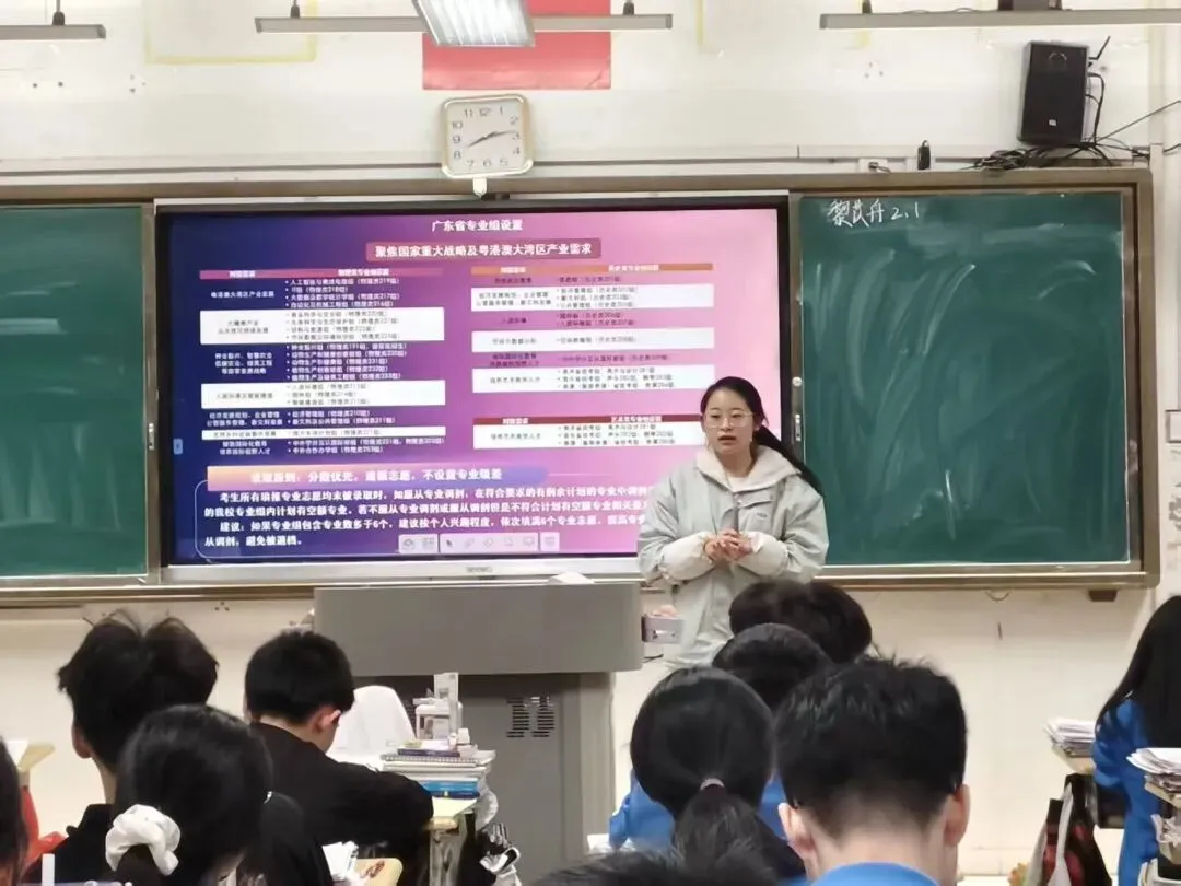 专业介绍方面,团队从华农传统优势专业讲到新兴专业,尤其重点介绍了动物医学、数学与应用数学等专业,极大地激发了学弟学妹们对华农专业的兴趣;志愿填报方面,团队重点讲解了报考注意事项;校园生活方面,团队向学弟学妹们全方位展示了华农的美宿、美景、美食及各种文化活动,获得了热烈反响。在摆摊咨询和进班宣讲答疑环节,现场学子咨询踊跃,互动热烈。针对学弟学妹们关心的“如何平衡备考与目标计划”“华农各专业学习方向”“校园环境和住宿环境”以及“接下来如何备战高考”等问题,团队成员们结合自身经历,向学弟学妹们讲解了各专业基本情况和校园内的各种生活趣事,还介绍了自己备战高考的各种经验以及学习方法。