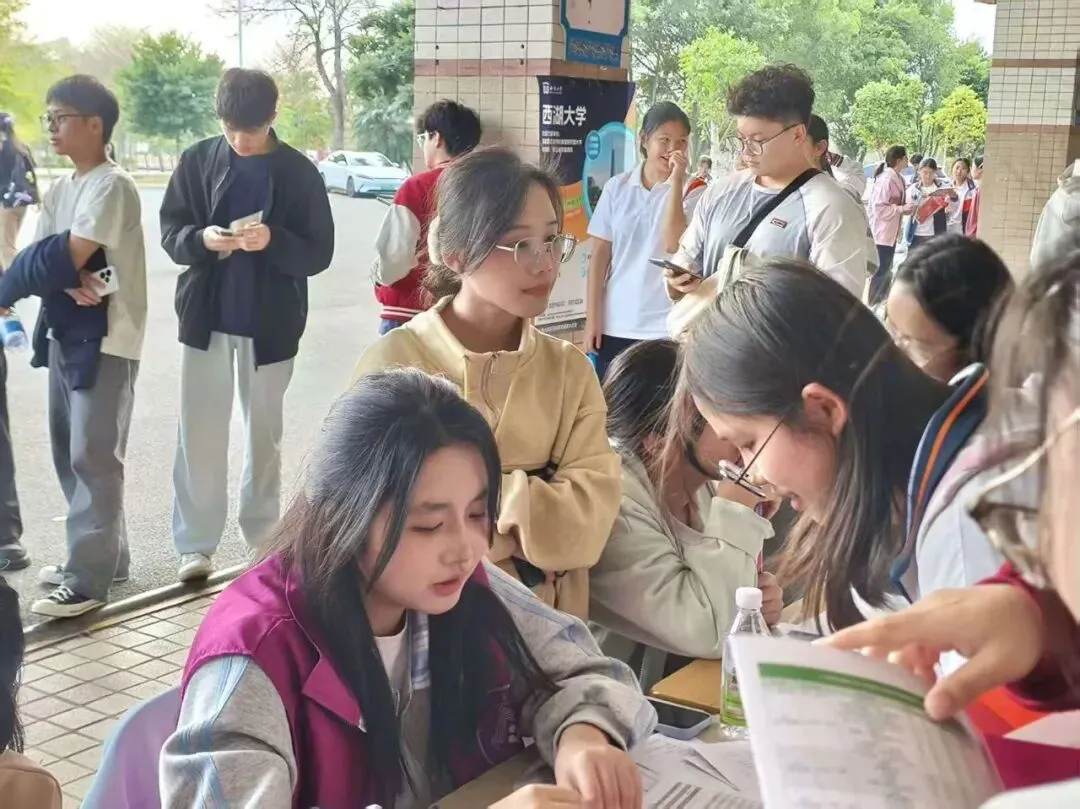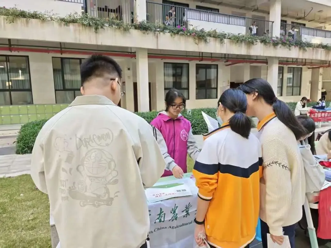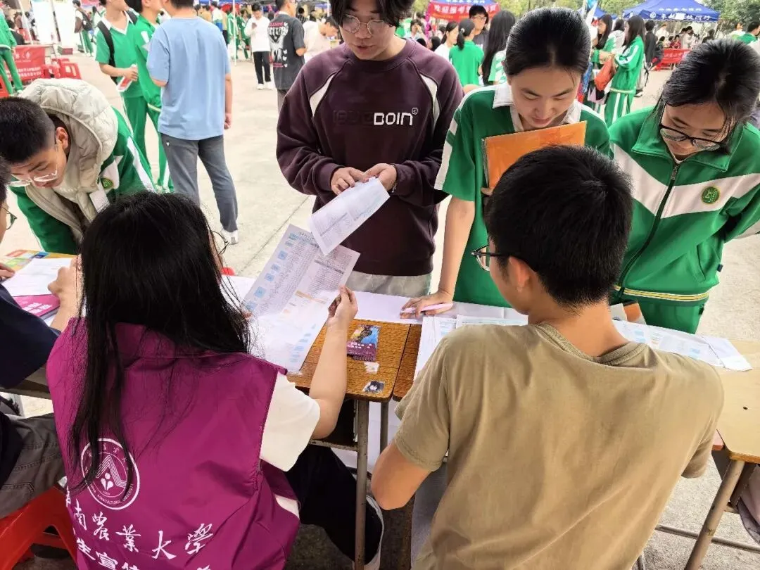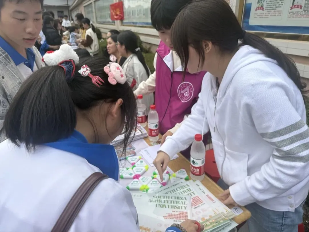 现场学弟学妹们咨询热情高涨。针对学弟学妹们关心的“如何平衡备考与目标规划”“华农各专业学习方向”等问题,团队成员结合高中时的经验,为他们解答,鼓励他们勇敢面对困难,积极战胜高考。