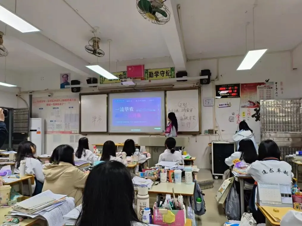 宣讲中,团队以华农是“双一流”高校为切入点,强调华农是一所各学科协同发展的综合性大学。团队介绍了农业科学、动物科学等华农传统强势学科,还重点展示了人工智能、法学、风景园林等专业,打破了同学们“华农只有农科”的刻板印象。成员们向学弟学妹们描绘华农日常:春季的紫荆花海、夏日的浓茂绿荫、教学楼的智慧课堂、实验室的静心钻研,以及“紫荆科技文化节”“宠物嘉年华”等一系列课外活动。团队还通过照片、视频等形式,直观展示空调全覆盖、上床下桌的舒适住宿环境,以及食堂里的美食风味,让学弟学妹们提前感受“学在华农、乐在华农”的真实氛围。互动环节,学弟学妹们围绕“备考心态与目标设定”“转专业与辅修政策”“校园出行与周边配套”等实际问题踊跃提问。成员们结合个人经历细致解答,还分享了学校在人才培养各方面的支持政策,并发放招生宣传材料、赠送华农特色文创纪念品,同时组建咨询群,为学弟学妹提供持续、贴心的报考指导。