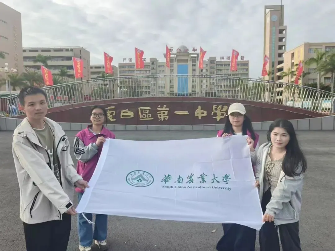 1月31日,邱灵作为招生宣传大使,带领团队成员陈梓滢、张奕静、陈欣柔回到母校广东高州中学,开展线下寒招宣传活动。团队采用“校园摆摊+进班宣讲”的形式,全面而详细地介绍了华农的各个方面。