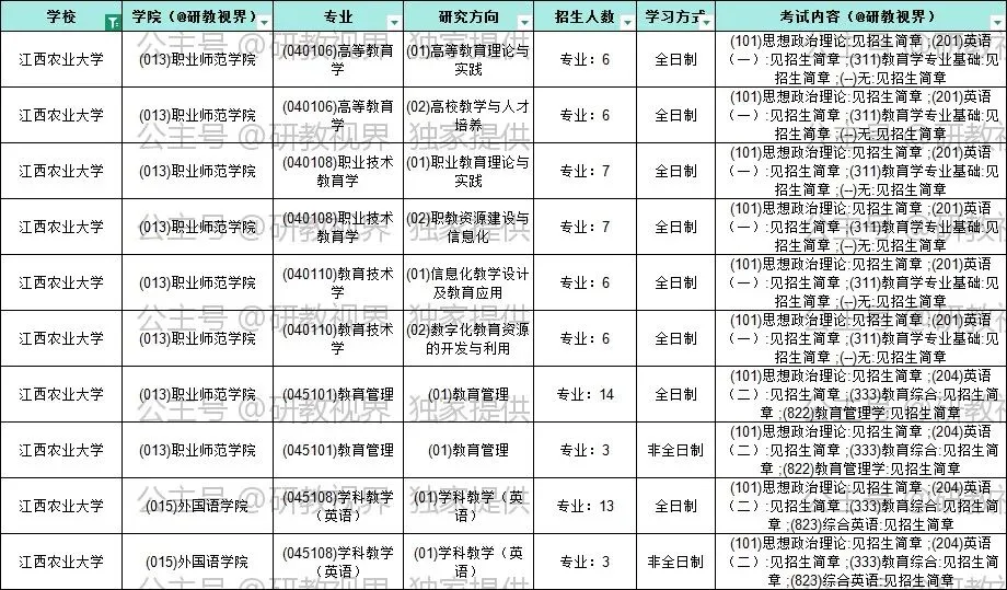 2025考研接受调剂专业:(045101)教育管理,(045110)学科教学(地理),(045300)国际中文教育,(045120)职业技术教育,(045109)学科教学(历史),(045102)学科教学(思政),(045114)现代教育技术,(045106)学科教学(化学),(040106)高等教育学,(045105)学科教学(物理),(045117)科学与技术教育,(047101)教育经济与管理,(040105)学前教育学