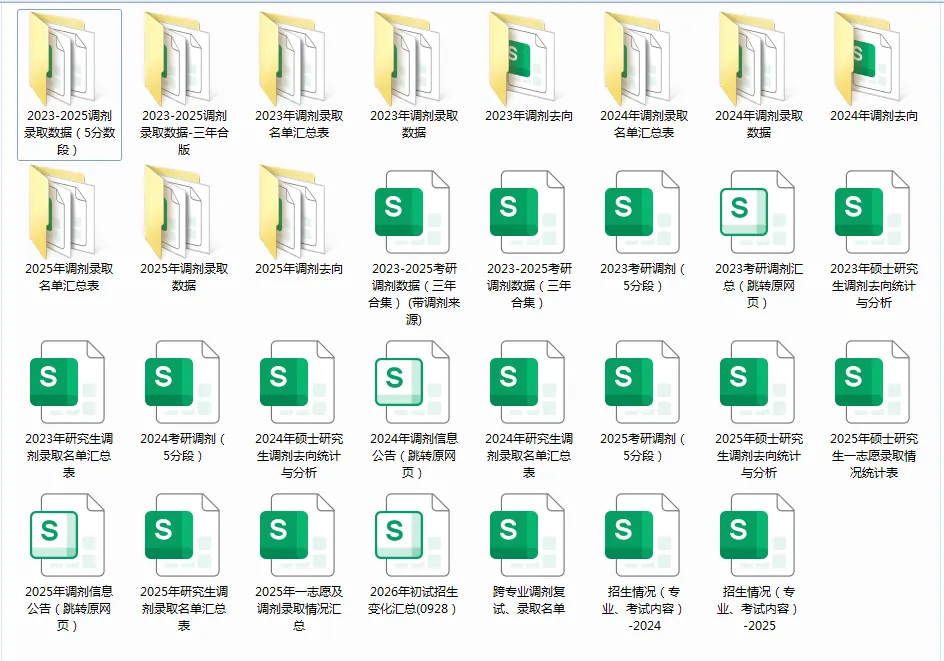 2023-2025年完整的考研调剂录取名单(含学生分数、一志愿学校)及分数段统计,一志愿和调剂录取的最高分、最低分,新增专业与调剂去向分析。maybe市面上独一份!