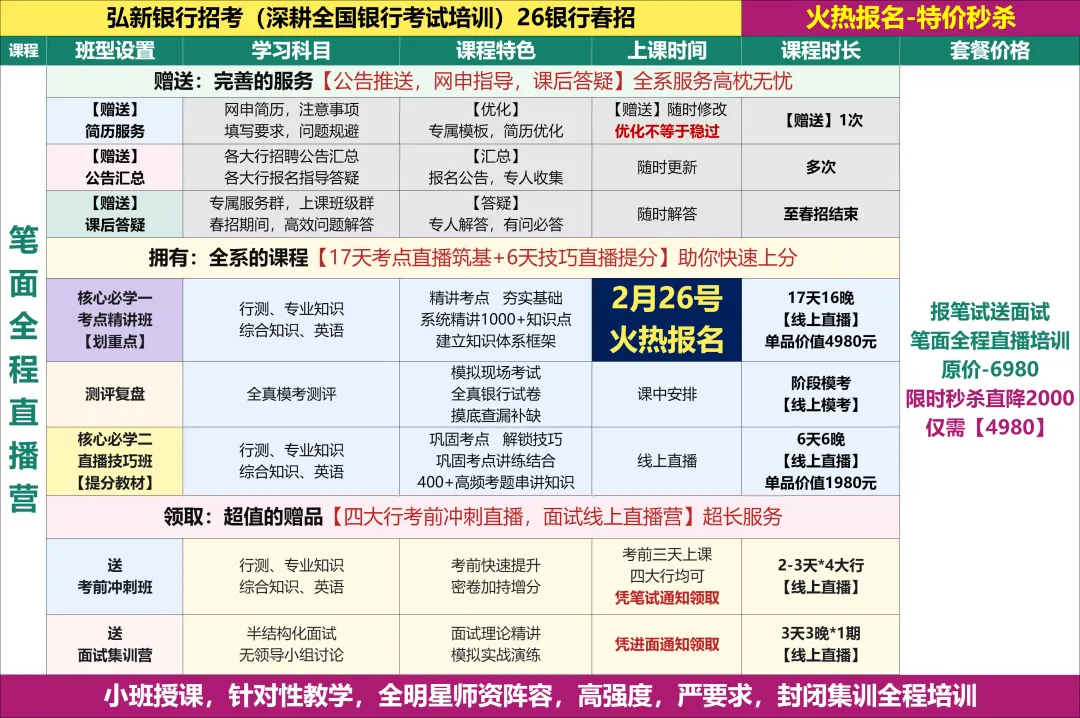 笔试系统学习,赠送四大行考前冲刺+面试集训