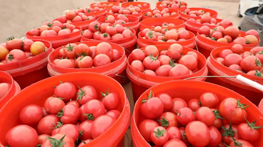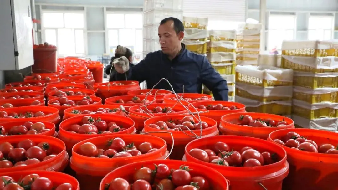 伽师县蔬菜产业融合示范园“喀柿红”大丰收。喀什地区融媒体中心 实习记者尉旭升 摄