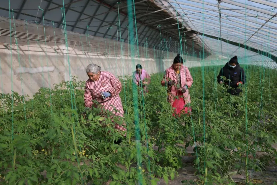 叶城县阿克塔什镇大棚内工人们正对西红柿打顶。喀什地区融媒体中心 记者陈文军 摄