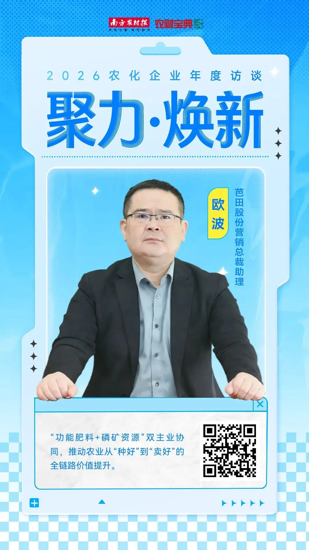 本次《2026农化企业年度访谈》栏目,南方农村报、农化宝典记者专访了芭田股份营销总裁助理欧波,从年度发展、市场研判、行业趋势、营销实践、技术研发等多个维度,解读芭田2025年的发展成果与2026年的布局规划,探寻肥料行业从产品竞争到价值经营的转型之路。南方农村报:用一个关键词或一句话总结2025年,您会用什么,为什么?
