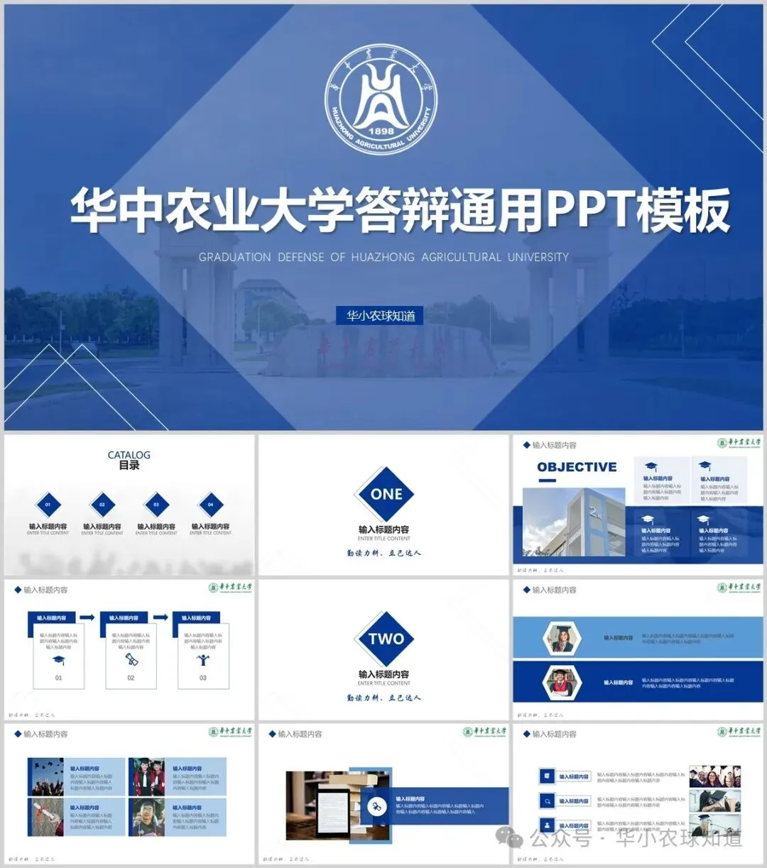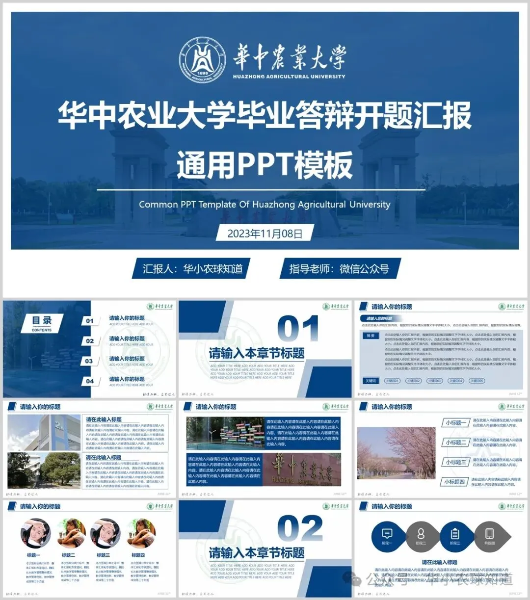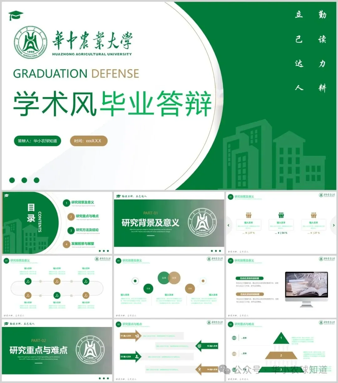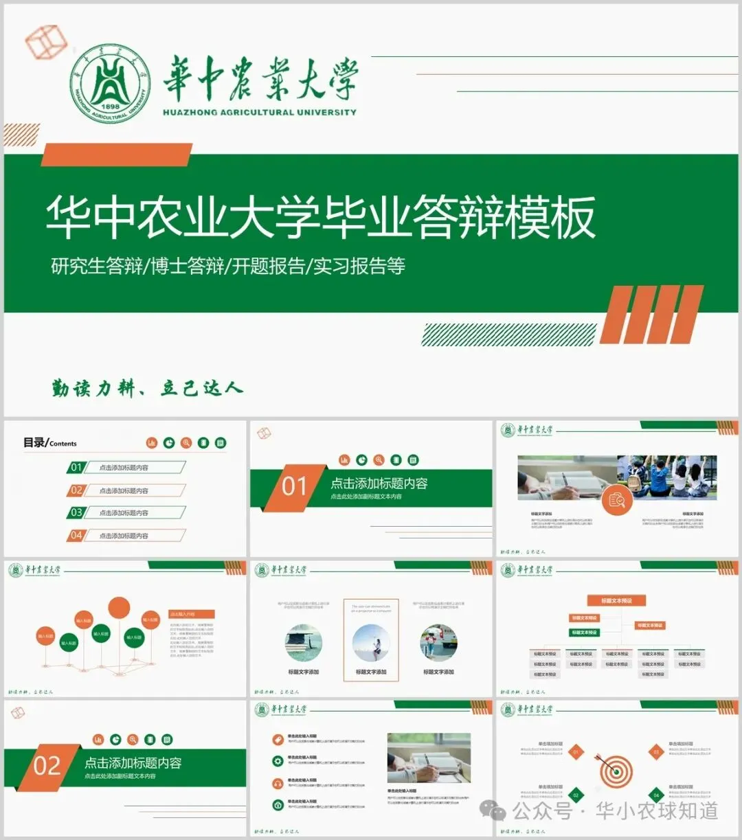 “华中农业大学”专属PPT模板来啦,本硕博汇报答辩必备!