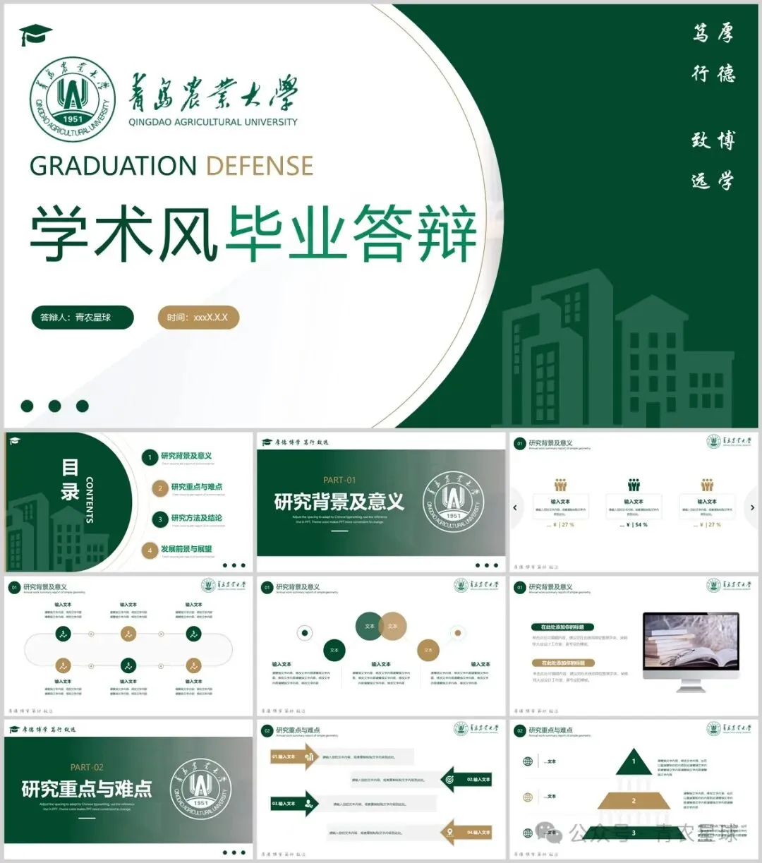 “青岛农业大学”专属PPT模板来啦,本硕博汇报答辩必备!
