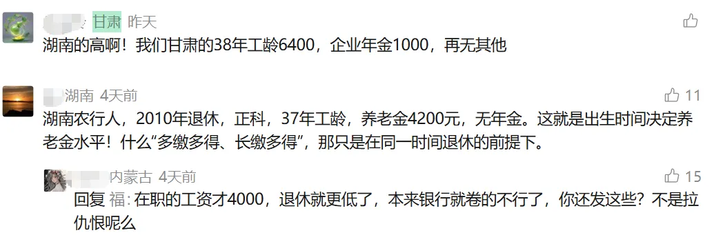 他说:早退休的吃亏了,同样工龄,2010年退和2024年退,差了好几千块,心里不是滋味啊。