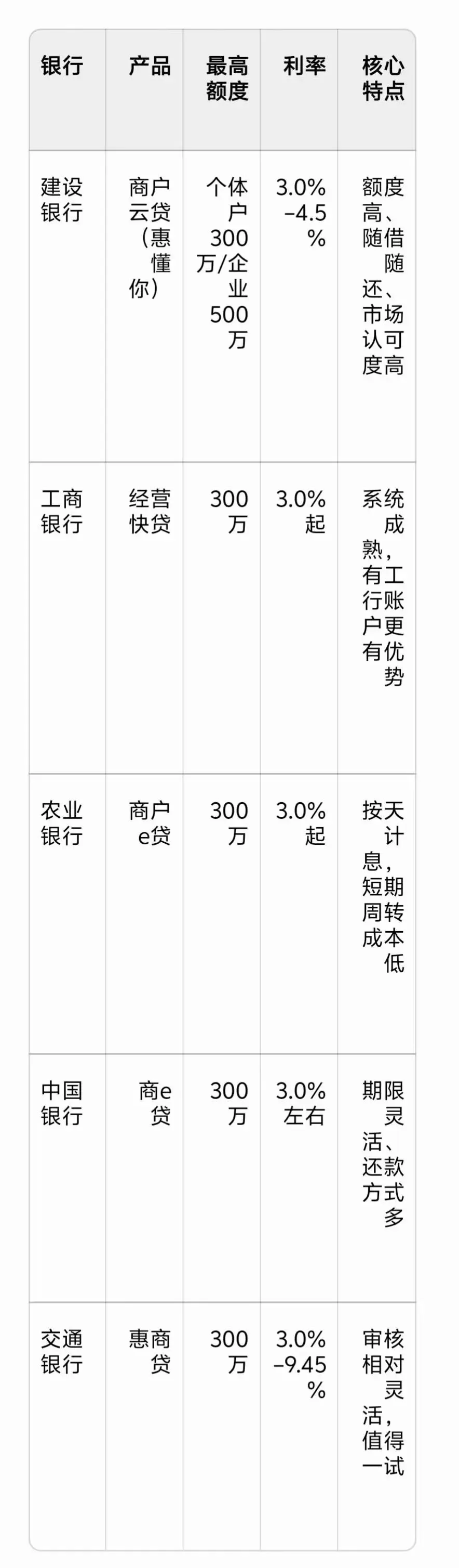 五大行经营贷 · 一表看懂