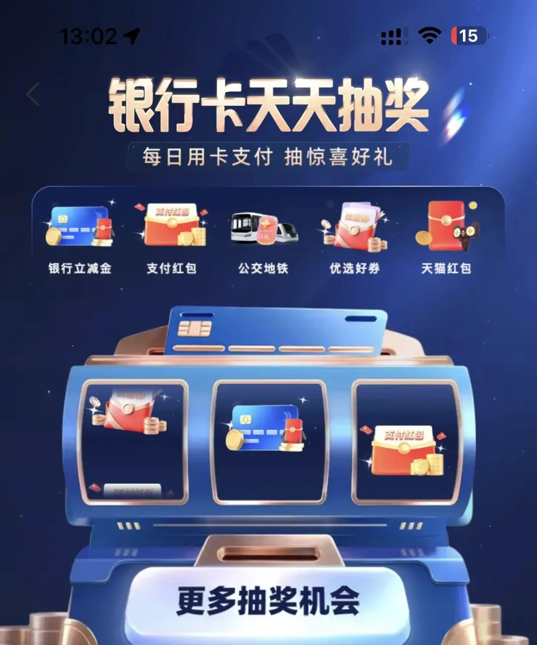 zfb app-我的-银行卡,抽奖去 目前能中立减金
