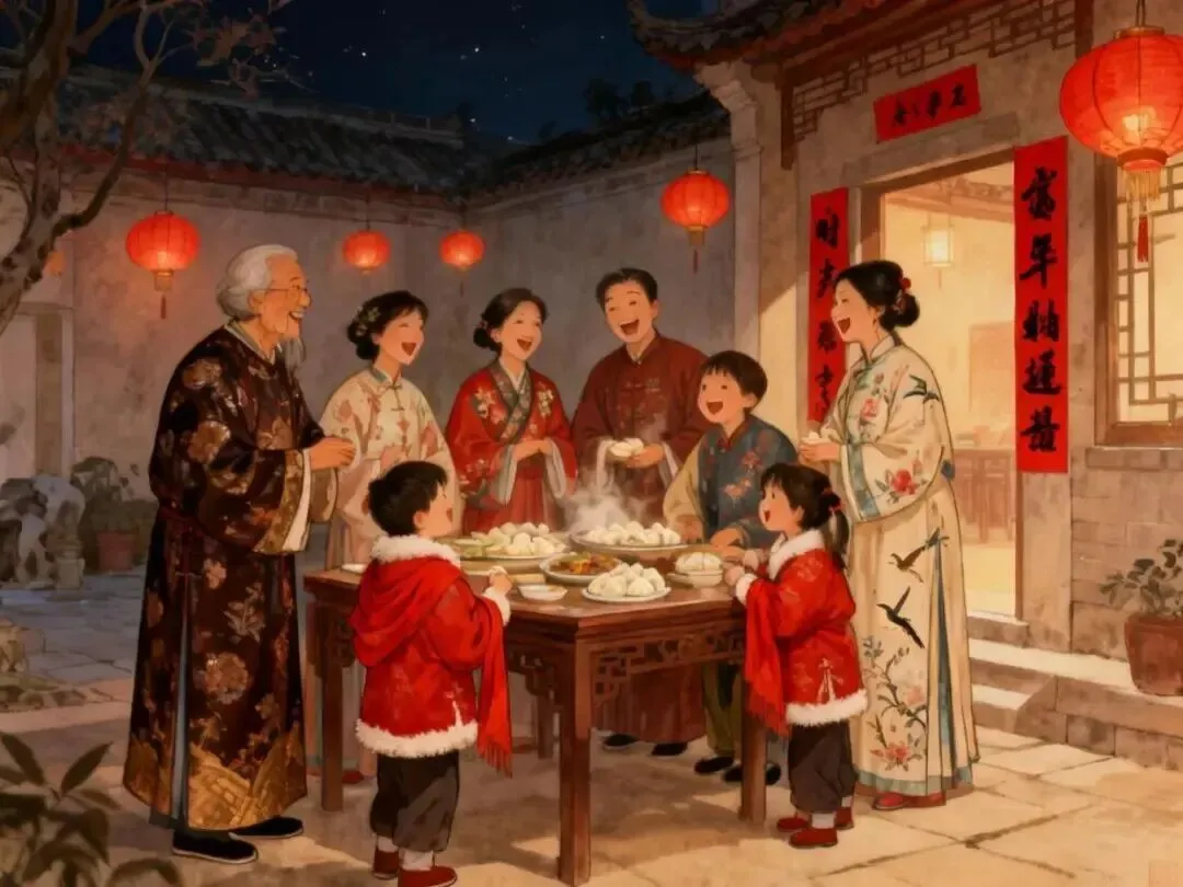 古人认为除夕夜邪气易侵,守岁灯火通明可驱赶“年兽”(传说中的恶兽),保护家宅平安。这一习俗暗含保护农作物和牲畜免受自然灾害的祈愿。