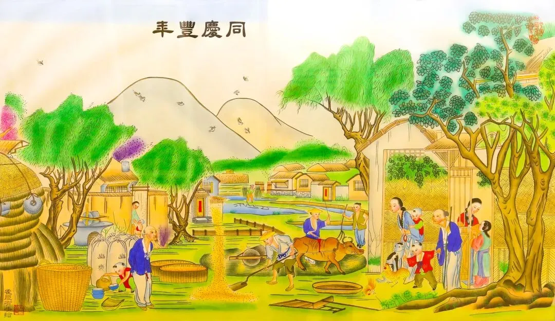 耕以养生,读以明道。《同庆丰年》描绘和谐安宁的农耕生活,《五子登科》鼓舞学子金榜题名。在浓浓墨香与田园气息交织的画面里,体会农业劳动与精神追求的美好传承。