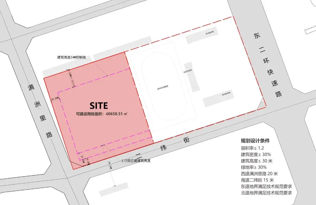 基地位于呼和浩特市赛罕区东二环快速路以西、二纬街以北、满洲里路以东,东侧毗邻赛罕区民族中学,南侧、北侧为现状住宅区,西侧为建设中的住宅用地。现状地势平坦,周边居住生活片区成熟,交通便利。