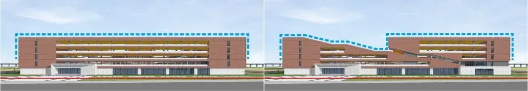 The flexible roof form is also reflected in the facade, breaking the stereotype of traditional horizontal lines in schools and creating a more dynamic architectural form and a well-arranged urban skyline. Matched with the college-style brick red paint, it harmonizes with the surrounding buildings and highlights the educational characteristics.
