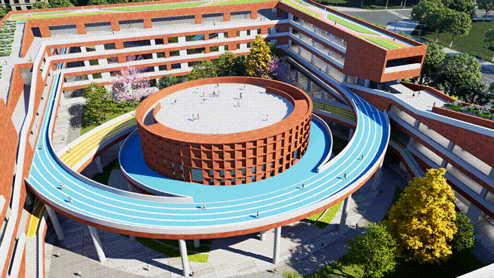 The traditional school space is mainly for teaching, with various activity Spaces centered around teaching. However, for this design, we propose the design concept of "Happy Learning Courtyard + Three-dimensional Garden Tour". It breaks the traditional single plane enclosure form of "classroom + corridor" in schools and expands more activity places both indoors and outdoors as well as in different dimensions. forming a campus space where the "college" surrounds the "paradise", which stimulates students' interest in learning and realizes the efficient sharing of educational resources.