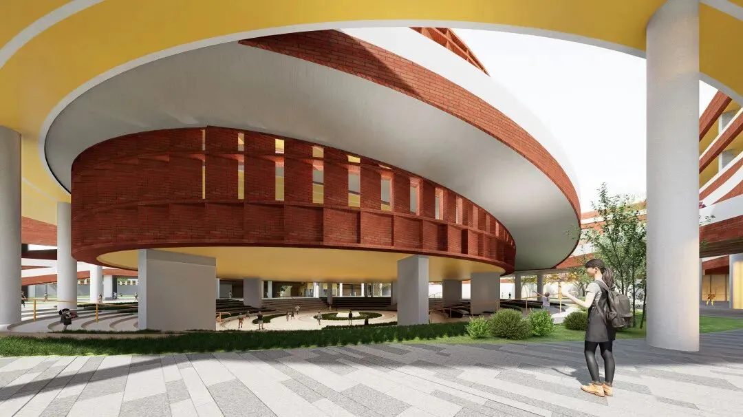 The central part of the teaching compound is a circular area that serves both as a reading room and a lecture hall. The roof of the lecture hall is equipped with an open-air theater, providing a stage for students to showcase their talents. The floor at the bottom of the lecture hall is designed as a sunken stage to enhance the spatial interest and promote interaction among students.