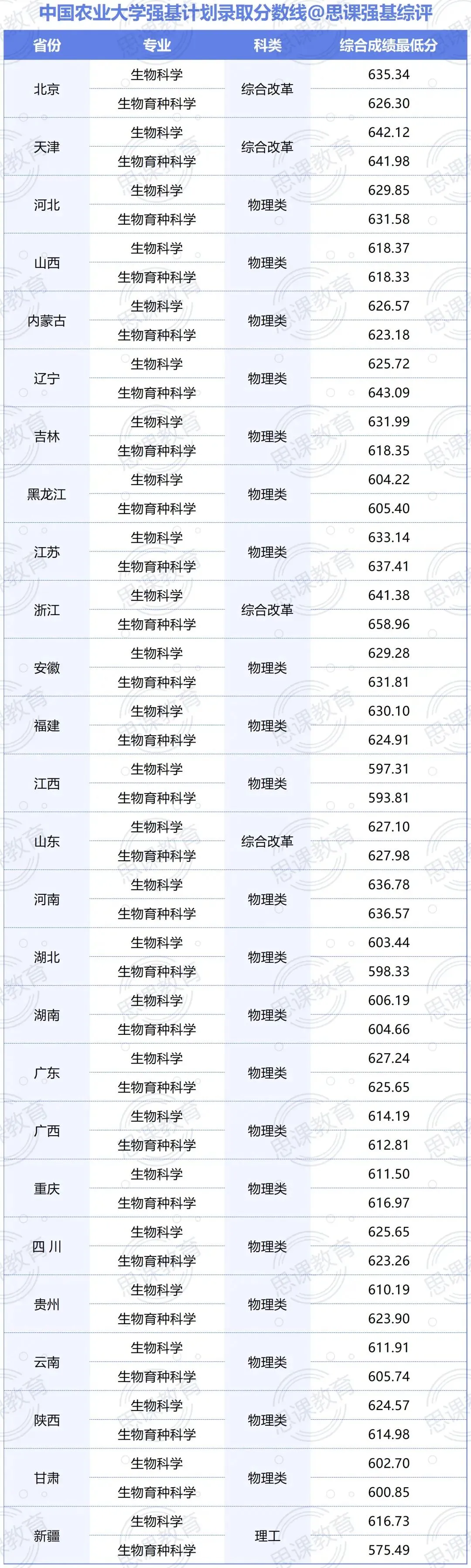 中国农大强基计划招生2个专业:生物科学、生物育种科学。