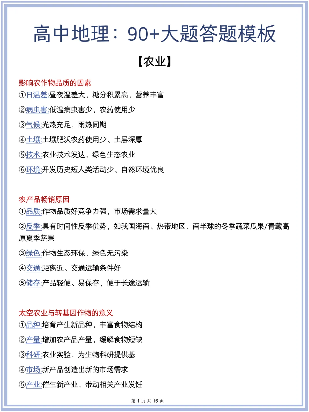 2026最新版:高中地理农业大题90+答题模板汇总,三年通用,快收藏!(可打印)