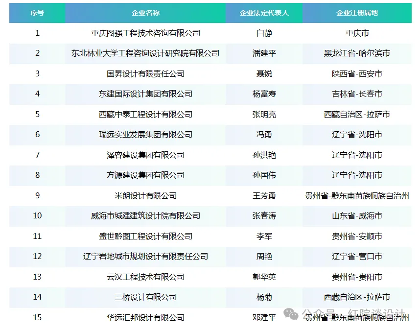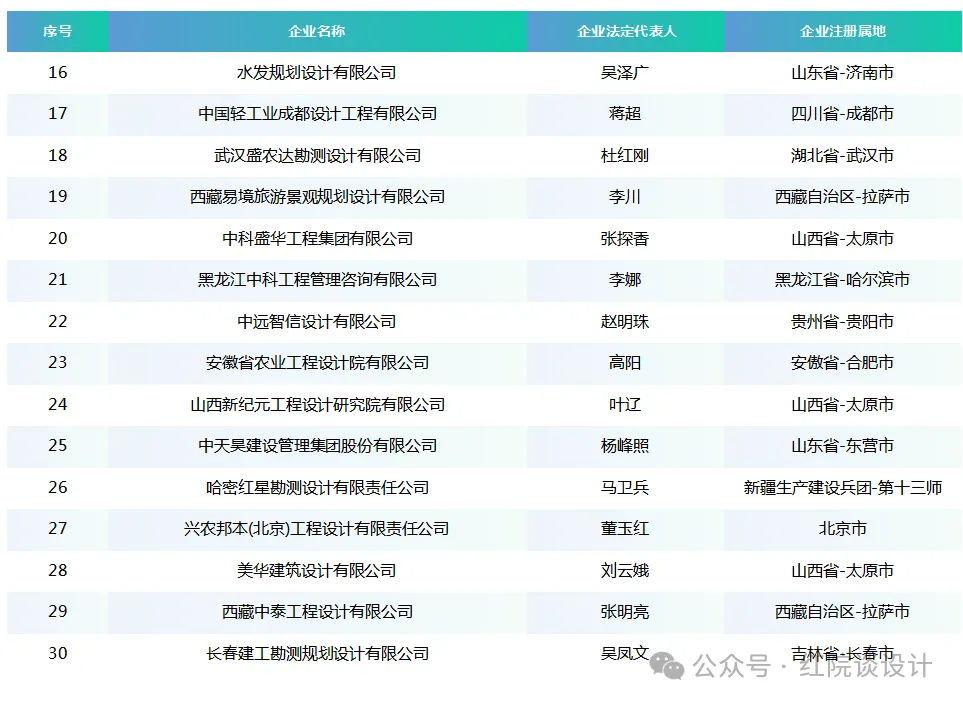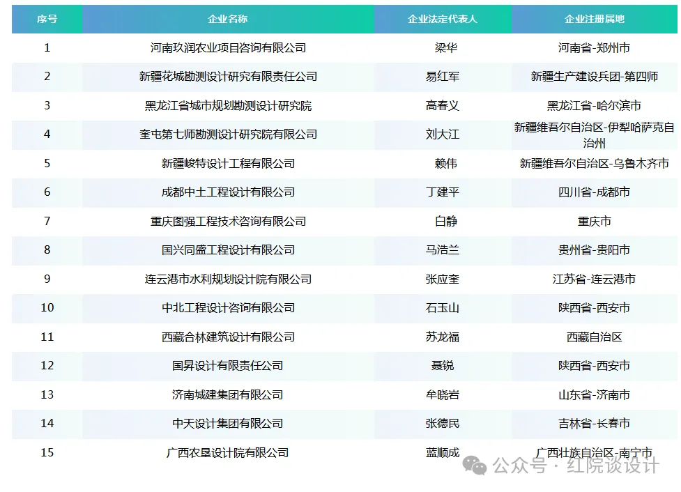 >工程设计农林行业(林业、农业)乙级资质企业汇总