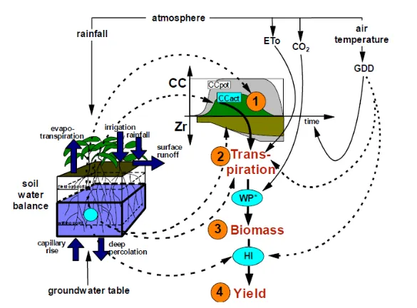 AquaCrop是由世界粮食及农业组织(FAO)开发的一个先进模型,旨在研究和优化农作物的水分生产效率。这个模型在全球范围内被广泛应用于农业水管理,特别是在制定农作物灌溉计划和应对水资源限制方面显示出其强大的实用性。AquaCrop 不仅包含一个全面的数据库,还提供了用户友好的接口,使得它在实际应用中极为便捷。