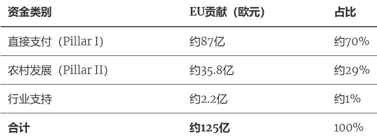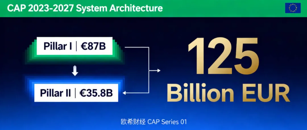 很多人把CAP理解为"欧盟发给农民的补贴",这个理解不算错,但太浅。更准确的理解是:CAP是欧盟与成员国农民之间的一份多年期绩效合同。欧盟提供资金,条件是农民按照约定的方式耕作——不过度开发土地、保护水资源与生态、维持农村景观、必要时做出额外的绿色努力。农民履约,钱就到账;不履约,钱就按比例扣减,严重的全额追回。这个框架,在2023-2027期变得比以往任何时候都更加严格和精细。二、两大支柱:Pillar I与Pillar II,两种截然不同的钱