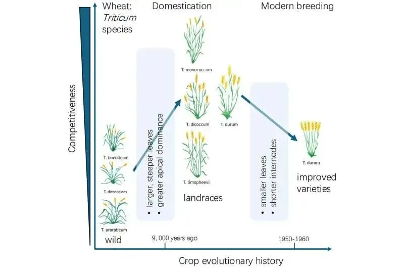 一项新研究认为是由一场争夺光线和空间的进化"军备竞赛"导致了小麦的早期驯化。该研究由单毅翔(YixiangShan)博士和科林·奥斯本教授领导的研究,与马德里自治大学、胡安卡洛斯国王大学和瓦赫宁根大学合作,考察了野生植物如何适应人类利用,发现早期栽培选择了比野生祖先具有显著更强竞争能力的植物。成果发表在《当代生物学》上。
