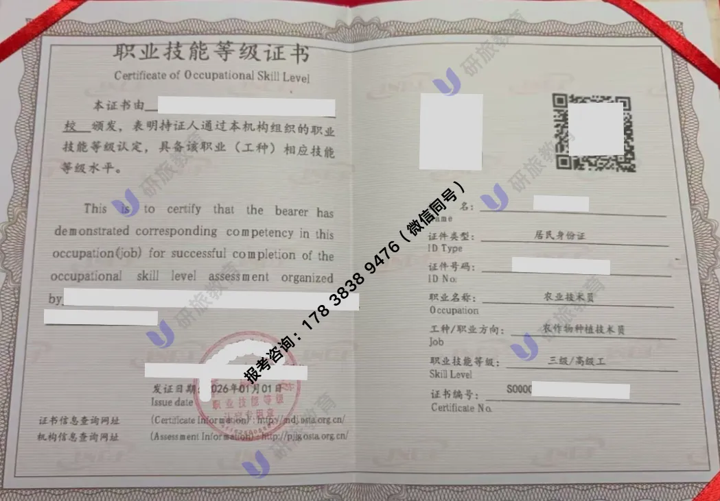 《农业技术员》人社(国家)职业技能等级证书 报考(细分工种:农作物种植、园艺生产、畜牧、水产、农机技术员、肥料/饲料配方师)