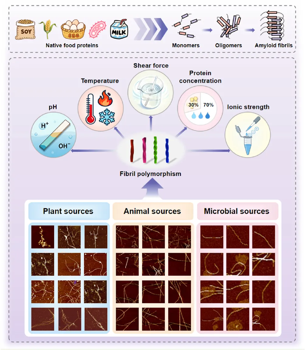 淀粉样纤维作为具有交叉β折叠结构的蛋白质聚集体,近年来因其独特的力学性能和自组装能力在食品科学领域展现出广阔潜力。然而,传统表征方法受限于分辨率不足以及对复杂环境适应性较差,从而限制了对其结构—功能关系的全面理解。