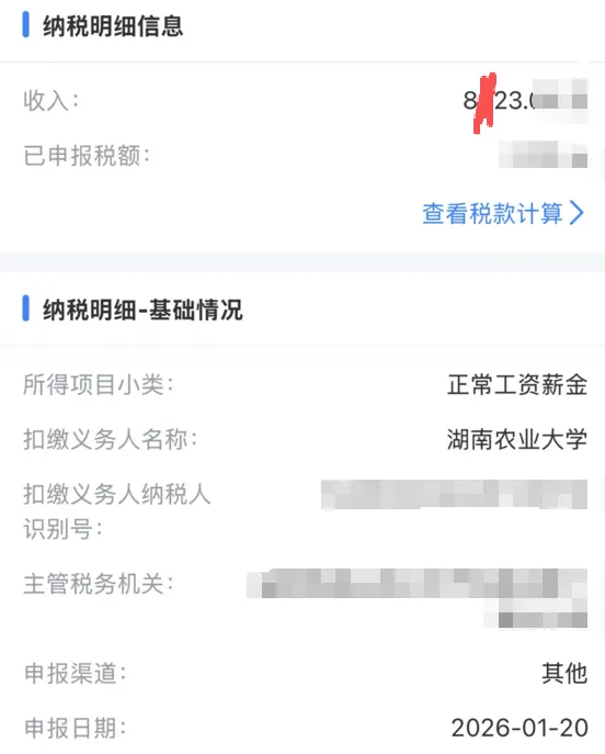 一个湖南农业大学的老师,在网上晒出了自己的纳税记录。2026年一整年的收入,8000多元,快9000了,但还没到。