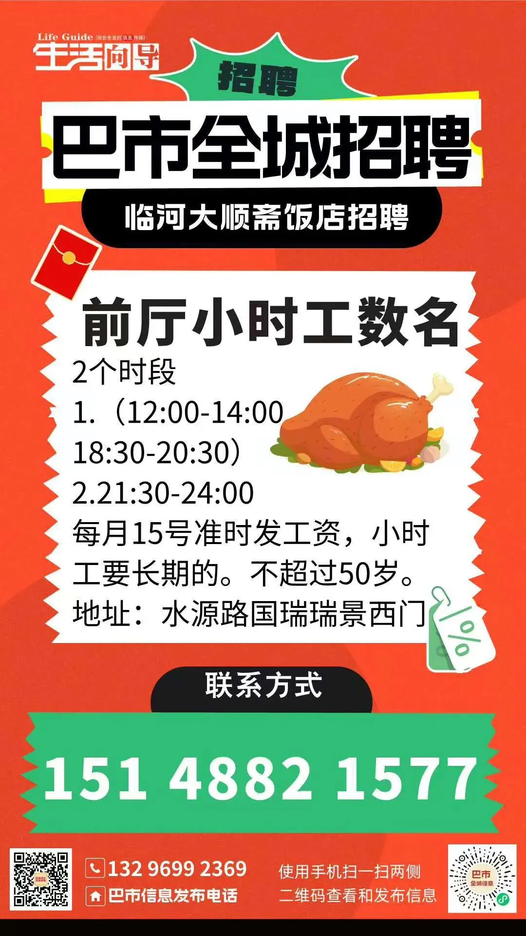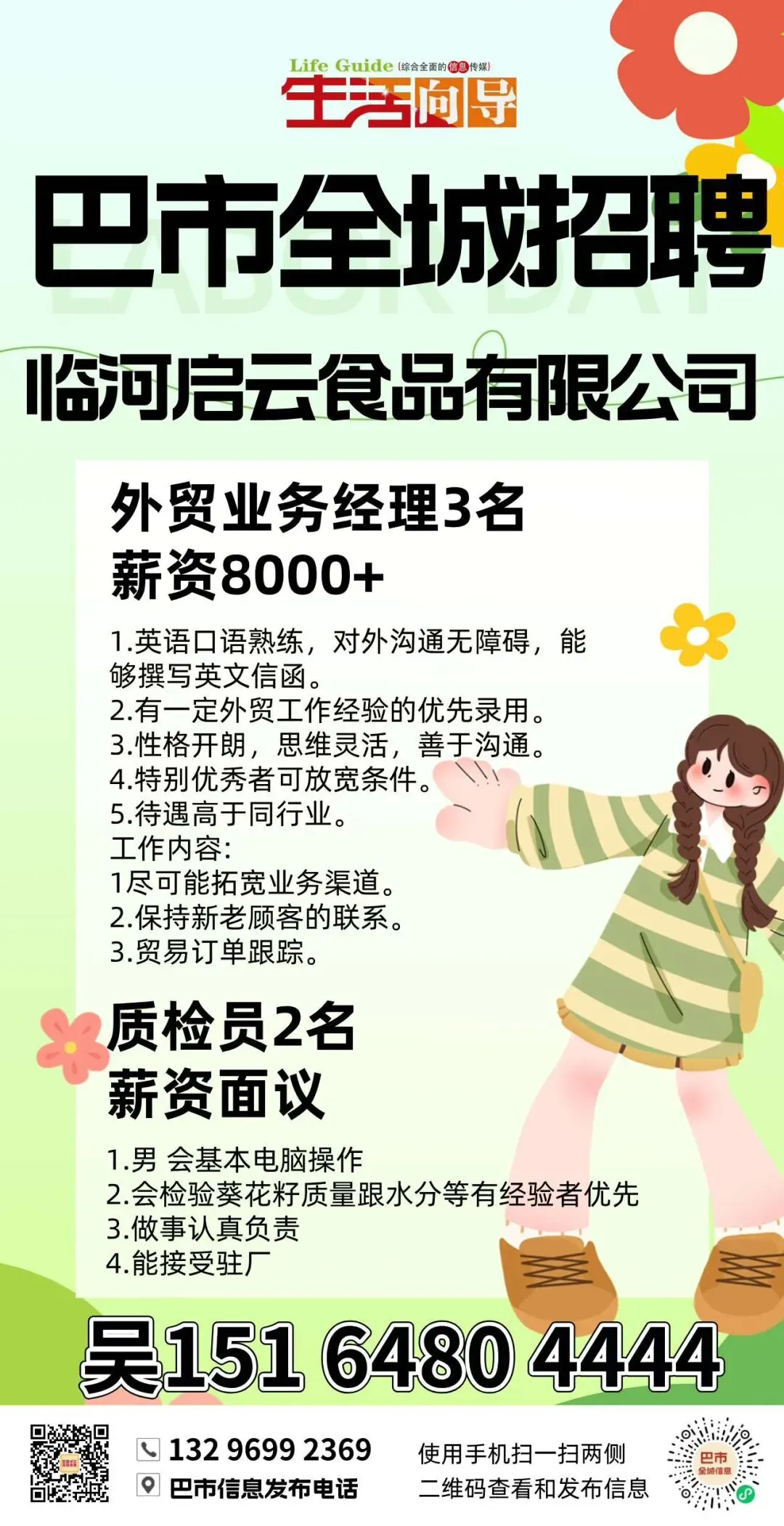 备注:工资准时发,能者多得,要长期工
