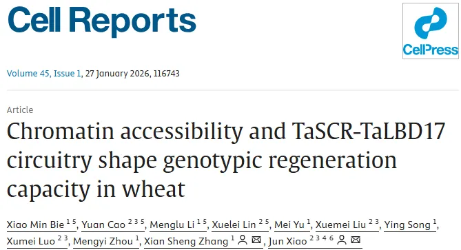 近期,山东农业大学张宪省教授团队与中科院遗传与发育生物学研究所肖军研究员团队展开合作,在Cell Reports期刊上发表了一项重要研究成果,题为 Chromatin accessibility and TaSCR-TaLBD17 circuitry shape genotypic regeneration capacity in wheat。该研究通过系统整合Fielder与济麦22两个品种在再生过程中的转录组数据与染色质可及性图谱,阐明了染色质重塑及转录调控网络在决定小麦基因型依赖再生能力中的核心作用,并成功构建了TaSCR-TaLBD17调控模块,为高效解决小麦主栽品种转化难题提供了新途径。不久前,山东农业大学张宪省教授团队还在《Cell》上发表了题为Time-resolved reprogramming of single somatic cells into totipotent states during plant regeneration的重磅论文。