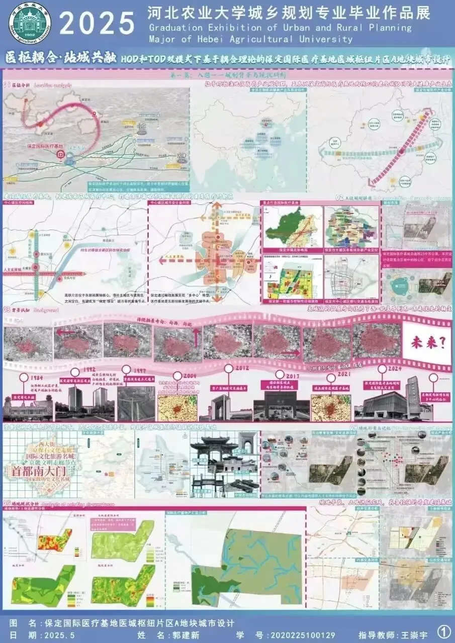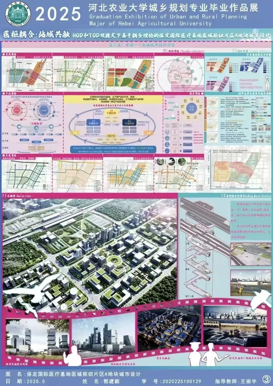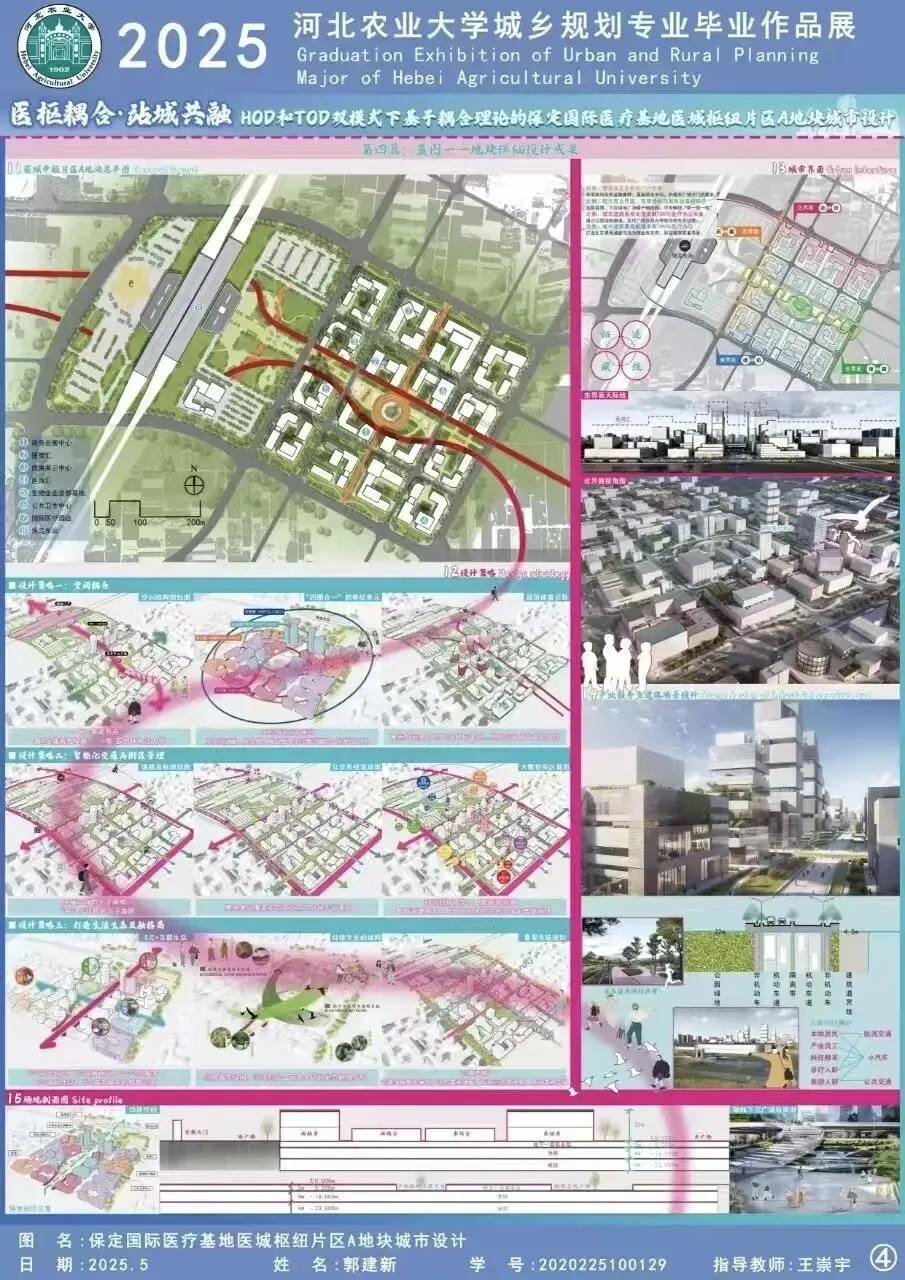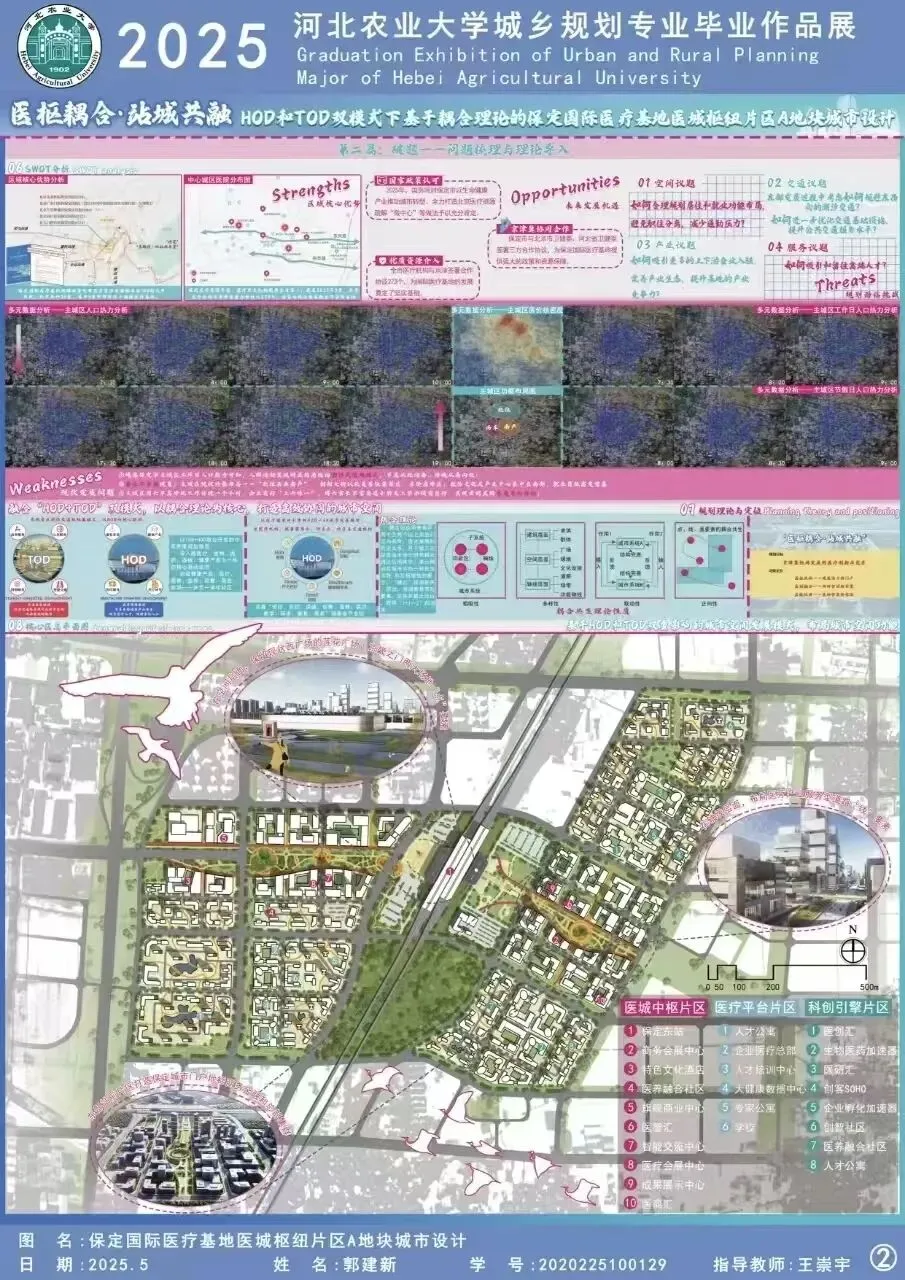 设计说明:保定国际医疗基地作为保定市现阶段的“一号工程”,是保定市落实二十大精神的具体行动,积极承接北京非首都医疗卫生功能疏解。本设计选取医城枢纽片区A地块进行详细城市设计,包含保定东站西广场至东站前区部分,基于HOD和TOD双模式引入耦合理论,耦合医院集群与交通枢纽周边的城市空间,力求医疗功能因交通的高效连接而更具可达性,交通网络因医疗资源的集聚而更具活力。