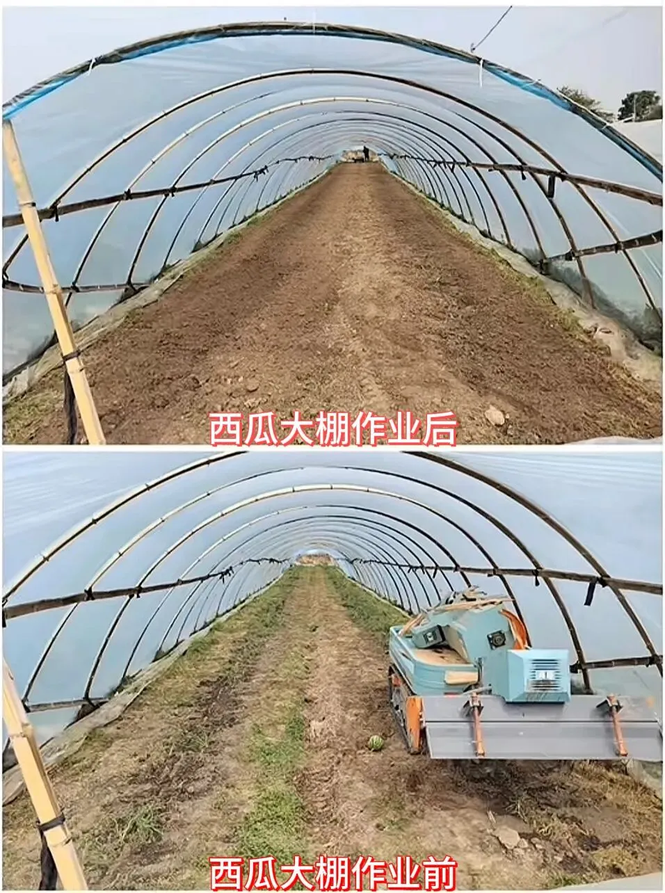 传统农机不适配:大型机进棚难、转弯难、伤苗、污染重,大棚里开进去一圈,作物伤一半。