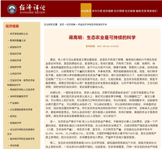 长期以来,一提到生态农业,很多人就会说,你那不就是原始农业吗?以前不就是那么干的吗?你看看,我们现代农业有多么高大上:我们可以搞反季节种植,可以搞植物工厂,搞无土栽培;可以用无人机打农药;可以发明几万种农药对付害虫,可以转基因,实现细胞手术;还能够带动现代医疗产业,可以用那么高级的 CT,可以搞试管婴儿,可以发明药物对抗癌症;环境虽然会污染,但还有后面的环保产业。你们生态农业有这样的技术吗?你们什么都不用,没有高大上的技术,看起来就是落后。为什么会这样呢?因为美国人没有做到,在他们眼里,美国的农业才是最高境界。搞生态农业其实是能够满足14亿人吃饭的,试分析如下:第一,生态农业产量并不低 有人认为生态农业产量低,不能满足大量人口的需求,这是一个严重的误区。笔者团队通过15年的科学实验,在山东有机农业模式下,已成功将低产田改造为吨粮田(小麦、玉米周年产量);有机冬小麦、夏玉米、大豆和花生产量,分别超出山东省平均水平42.6%、60.9%、32.2%和38.1%.。在河南,大面积种植的有机小麦平均750斤/亩,是在丘陵低产田上获得的。因为优质优价,农民愿意多投入劳动,产量并不会减少甚至提高。第二,生态农业的收获系数是100% 收获系数就是可食部分占地上部的比例,一半达到50%就很不错的。也就是说,在农学家眼里,只有一半左右的光合产物是人类可以利用的,其余的是废弃物。但在生态学家眼里,100%的地上产物都能利用。这是怎么实现的呢?就是一半以上的秸秆用来喂养牛、羊等反刍动物,人吃肉就间接将秸秆变成了食物,动物的粪便再来还田养地,提高了土地生产力。因此生态农业收获是100%,而不是传统农业的不足一半。第三 食物不仅仅来自农田 除农田外,草原、森林、荒漠,尤其海洋是能够生产大量食物的。我国除18亿亩农田外,还有300万平方公里的海洋,60亿亩的草原,33亿亩的森林,8亿亩的湿地,这些生态空间在保护前提下,是能够提供大量食物的。笔者导师、著名生态学家、已故中国科学院学部委员侯学煜先生当年提出“大农业”、“大粮食”观点,就是建议国家不要将食物生产仅局限在农田里,而是农林牧副渔全面发展。第四,不用化肥也能够满足元素需求尤其是氮素 据笔者小组在国际刊物发表文章数据,我国每年产生的生物质资源量折干重约为15.27亿吨,动物尿液(湿重)约为8.79亿吨,共含有2553万吨纯氮,是全国农业栽培植物实际吸收化学合成氮的4.12倍,有机肥替代化肥潜力巨大。生物质氮最大贡献者来自畜禽粪便和尿液(54.5%),其次是作物秸秆(22.9%)、蔬菜废弃物(9.4%)、酒糟、醋糟和酱油糟(2.3%)、城市污泥(2.2%)、园林废弃物(2.1%)、城乡可降解生活垃圾(1.8%)、果园废弃物(1.8%)、渔业废弃物(1.6%)、中草药渣(0.64%)、菌棒(0.63%)、屠宰场废弃物(0.13%)等。将上述废弃的生物质材料充分利用起来,也能够满足农业栽培植物对化学元素的需求,且在源头解决环境污染问题。第五,生态农产品售价高农民有积极性 生态有机农产品价格为普通的3~5倍,企业有利润,优质优价大大带动农民的种地积极性。种、养、加、销、游“五位一体”发展,还可吸引农民在家门口就业。这是生态农业区别与化学化农业的最大特点,不是像美国农民那样每人经营上千上万亩,而是十几亩或几十亩,多投入的劳动在家门口变成现金收入。农业有了人气,农民在满足了自身食物安全的同时,生产出了比常规农业模式更多的食物。第六,生态农业强调分类生产人类与牲口的食物 随着人民群众生活水平的日益提高,我国居民的膳食结构发生了巨大变化,其显著特征是粮食等主食显著减少。过去30年来,年人均消费粮食由227公斤减至119公斤,减少了47%;而肉奶蛋等动物性食品显著增加,年人均消费量由18公斤增至47公斤,增加了161%。在粮食总消耗中,居民粮食消耗量逐年减少,仅占27%,很大一部分粮食作为饲料被消耗了。目前牲口吃的食物已远远超过人类,占三分之二以上。遗憾的是,人的口粮与牲口的饲料粮都是用同样的方法生产的,即大量农药、化肥、除草剂、激素乃至地膜的使用。按照我们的前期实验,为人类生产食物仅需要2亿亩优质耕地即可,这难到做不到吗?今后应当分类生产动物与人类的食物,为动物生产可以用规模化的现代农业,但为人类生产食物乃至中草药,要用生态或有机的办法。总之,生态农业不是原始落后的代名词,是一种农业革命,可从源头解决很多农业问题、环境问题、健康问题、社会问题。全社会要对生态农业多看一眼,在全国大量建立生态农业示范区,在乡村振兴的同时,建设美丽家园,实现共同富裕。蒋高明,中国科学院植物研究所研究员、中国生物多样性保护与绿色发展基金会原副秘书长,弘毅文明驿站创始人