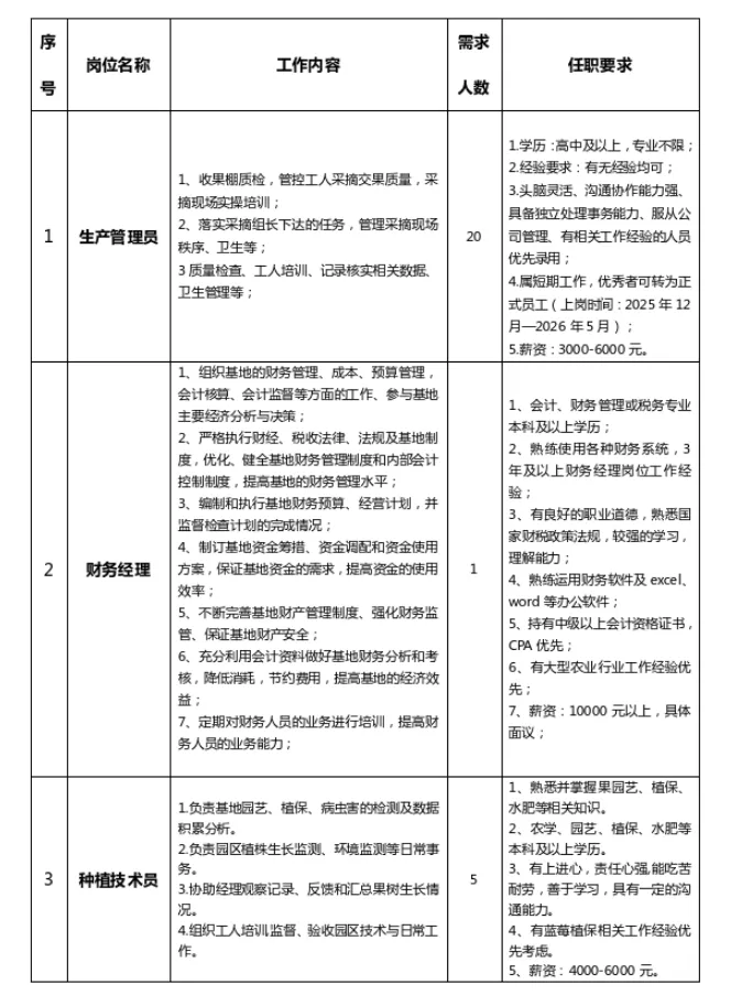 当前位置:首页>农业>蒙自招聘| 蒙自海升现代农业有限公司招聘26人 6000元/月 五险一金 免费食宿!