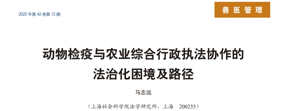 2025年3月,农业农村部发布《关于健全完善动物检疫与农业综合行政执法协作机制的通知》(简称《通知》)。《通知》就健全分工协作、违法线索移交、执法与补检衔接等协作程序作出规定。尽管《通知》对这一法治议题作出一定程度的回应,但仍然未能解决协作中存在的全部问题。科学评估并完善动物检疫与农业综合行政执法协作机制,必须在行政法治的视角下,从组织法、行为法和监督法3个维度分析协作机制中出现的法治困境,并提出相应的法治化路径,从而保障协作的合法性和有效性,以纾解专业化监管与综合化执法之间的张力。