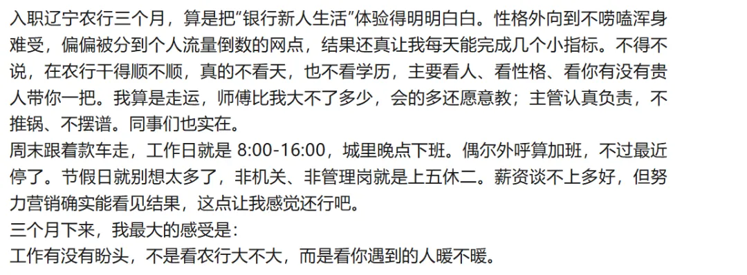 没有一丝人情味的单位,裙带关系近亲繁殖严重,没有人脉和靠山,只能干柜员,除非自己特殊优秀遇到了伯乐。