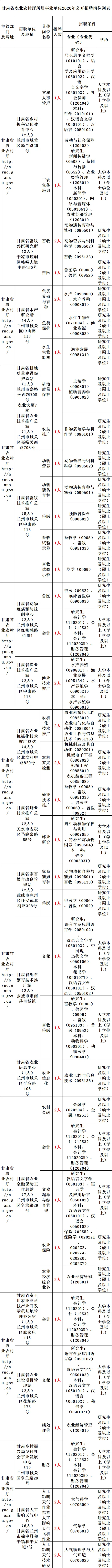 根据《事业单位公开招聘人员暂行规定》(人事部令第6号)《甘肃省事业单位公开招聘人员暂行办法》(甘办发〔2011〕22号)和《中共中央组织部、人力资源和社会保障部关于进一步做好事业单位公开招聘工作的通知》(人社部发〔2024〕57号)规定,现将甘肃省农业农村厅所属事业单位2026年公开招聘工作人员有关事项公告如下点击获取职位表: