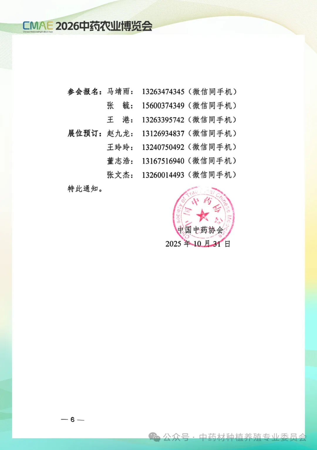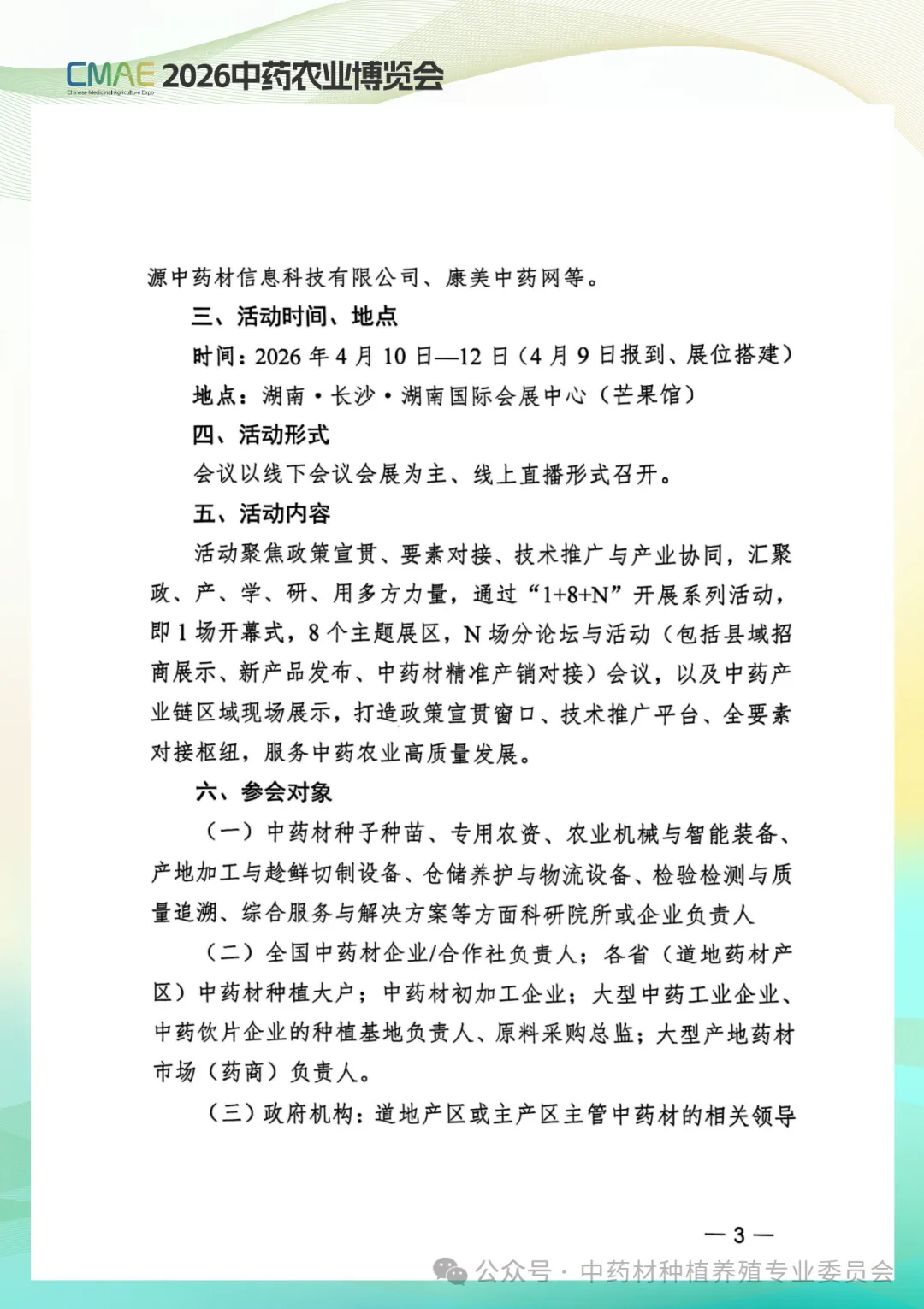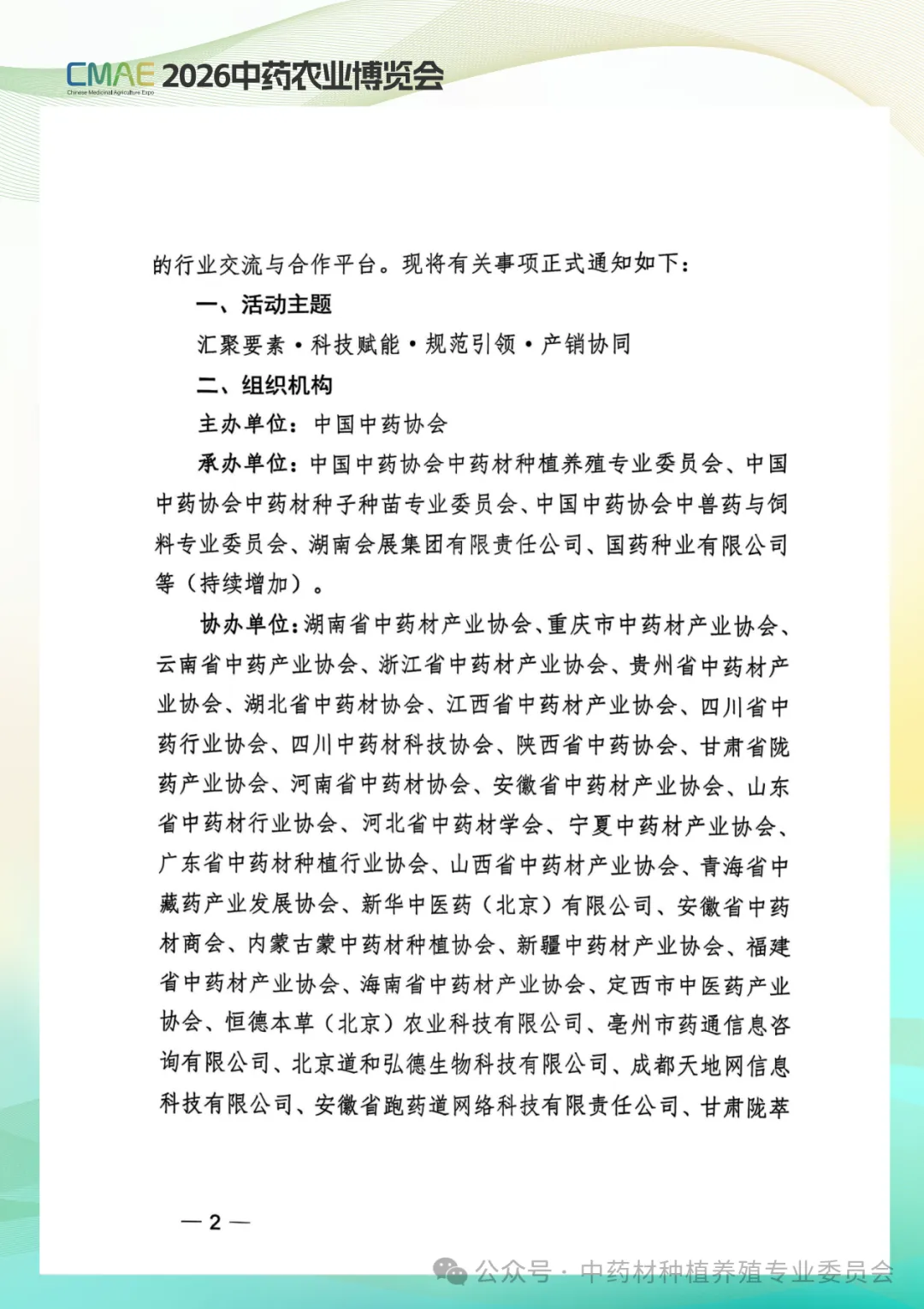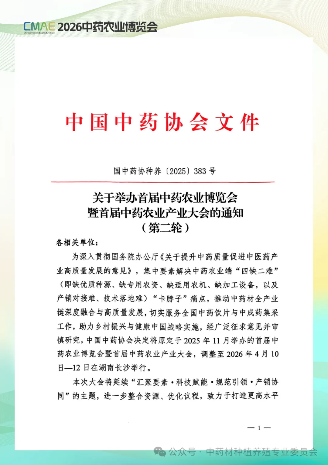 现诚挚邀请会员单位和产业同仁参加2026中药农业博览会暨中药农业产业大会,期待与您一同汇聚产业智慧,发掘合作潜能,共议前沿,共享机遇,开创高质量创新发展的新篇章。