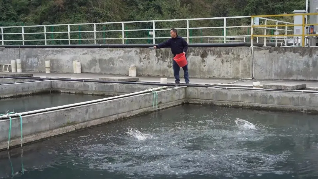 员工杨胜海说:“每天做的工作就基本上就是喂鱼投喂饲料、清理死鱼、排污消毒,还有每一天的清进水口,有时候需要转鱼、分鱼,我在这里也做得将近三年了,我一个月工资3500,还是可以的。”