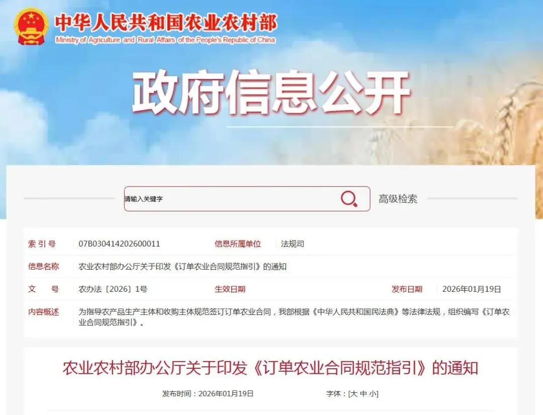 为指导农产品生产主体和收购主体规范签订订单农业合同,我部根据《中华人民共和国民法典》等法律法规,组织编写了《订单农业合同规范指引》(以下简称《指引》)。《指引》是依据相关法律规定对订单农业合同签订提供的行政指导。各地要加大《指引》宣传推广,积极指导有签订订单农业合同意向的农产品生产主体和收购主体,参照《指引》在平等自愿、协商一致的基础上依法订立合同、确定双方权利义务。要结合本地区产业发展实际,参照《指引》探索分领域发布订单农业合同示范文本,提高订单农业合同履约率,保障合同双方合法权益。要加强检验检测、涉农企业生产经营资质核查等服务,引导合同双方通过正规渠道选购农资、科学规范从事种植养殖。